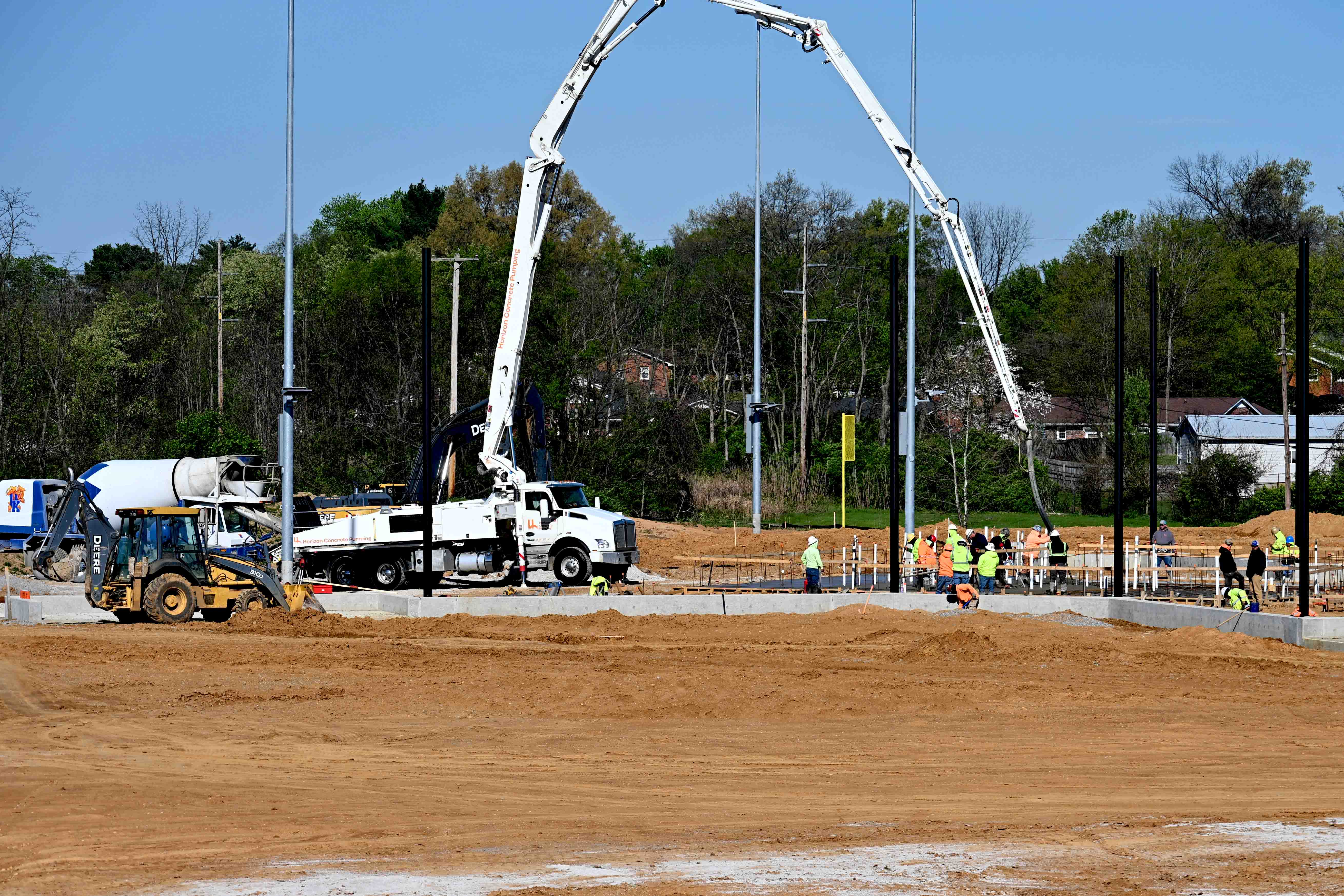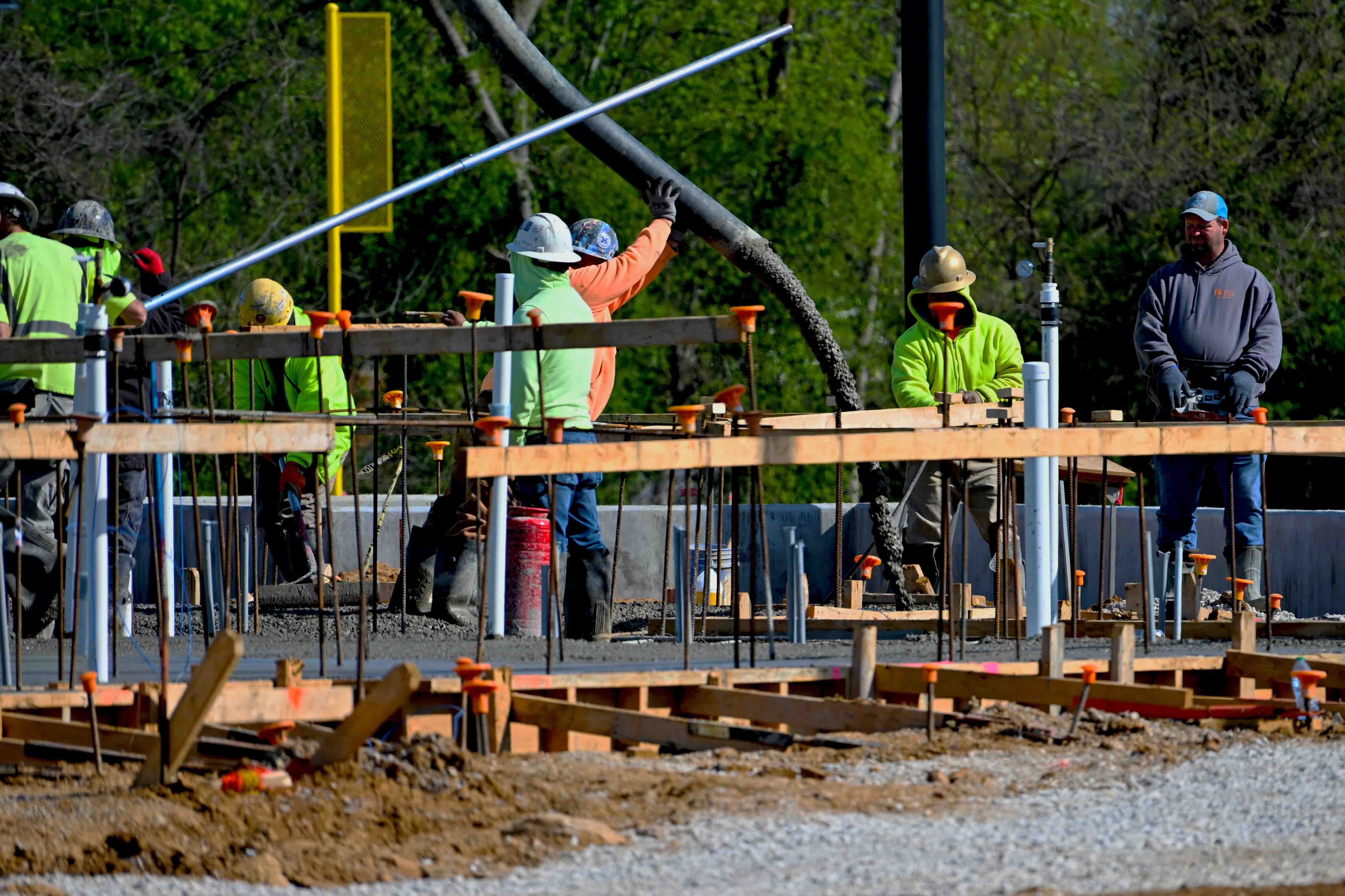 It is a busy day at the Lakeview Park softball complex. Work is progressing steadily at the new facility. This morning crews were working to pour the concrete pads at the concession stands. The complex is on track to be completed in October of 2026.